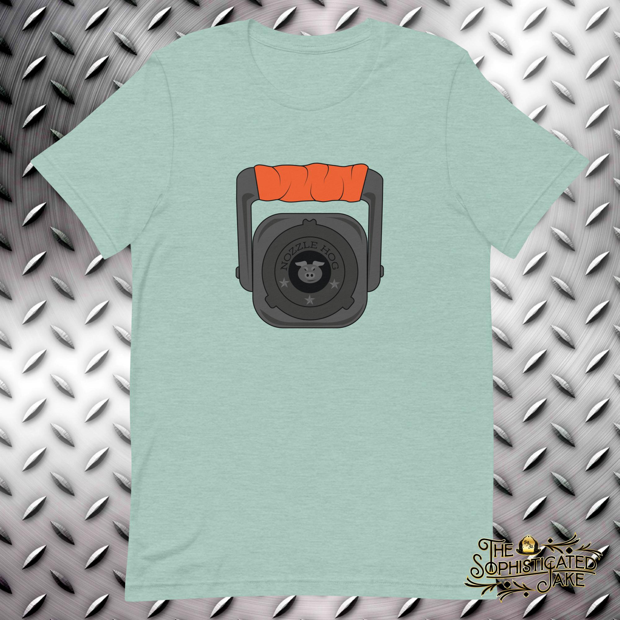 fire fighter, firefighter, EMT, paramedic, fire medic, first responder smooth bore nozzle, nozzle hog t-shirt design.